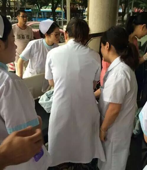 早上來上班的婦產(chǎn)科主任喻芳明看到有人招手,也立即走上前,就地展開接生。兒科醫(yī)生程梅聞訊后也迅速趕來現(xiàn)場協(xié)助。