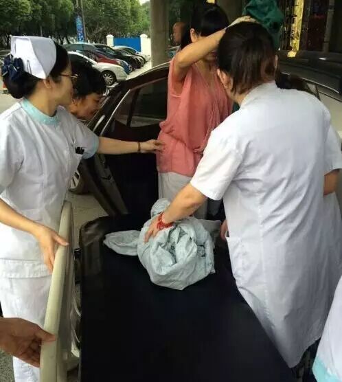 - “baby,baby……”9月10日早上7點(diǎn)20分,義烏醫(yī)院前大廳,一位外籍男子用不太標(biāo)準(zhǔn)的英語,比劃著手勢,急切向?qū)пt(yī)小唐求助。此時(shí),他的妻子就在大門外小車?yán)锷a(chǎn),已經(jīng)來不及進(jìn)產(chǎn)房。弄清情況后,小唐立即向搶救室奔跑,呼叫醫(yī)護(hù)人員,同時(shí)快速將急救床推到大門外小車旁邊。“快,接生包、消毒貯槽、被子……”聞訊產(chǎn)婦急產(chǎn)后,急診室護(hù)士長葉丹紅等一邊通知婦產(chǎn)科醫(yī)生前來接生,一邊組織醫(yī)護(hù)人員奔跑著來到現(xiàn)場,展開救治。