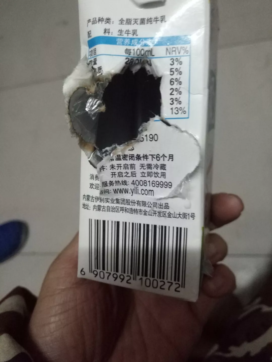 稠壇網(wǎng)友在論壇發(fā)帖:在江東宗塘二區(qū)某批發(fā)部買的伊利純牛奶,婆婆隨手拿了兩瓶給大小孫子喝。